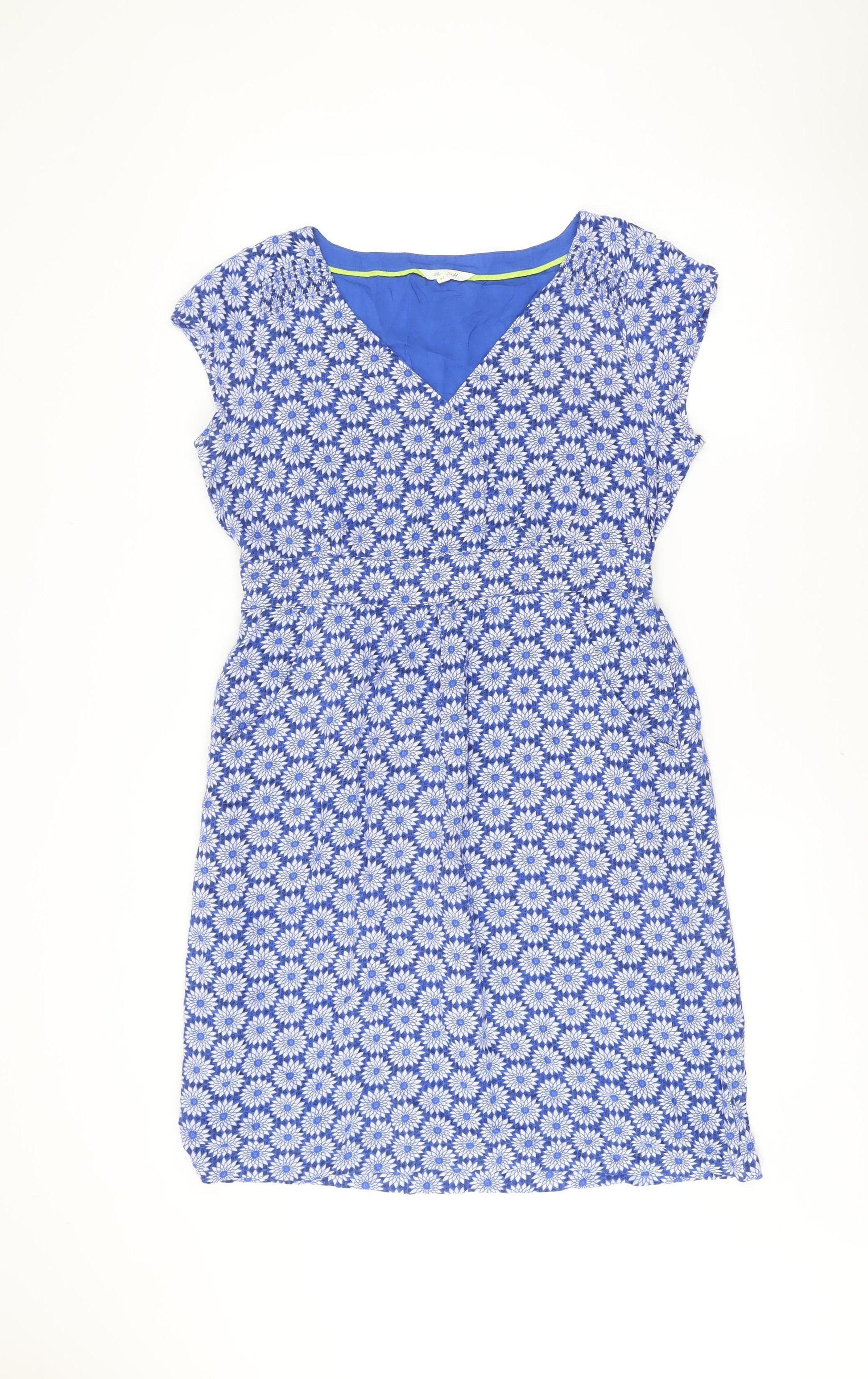 White Stuff Women’s Blue Floral Shift Dress Size 14 V-Neck Summer