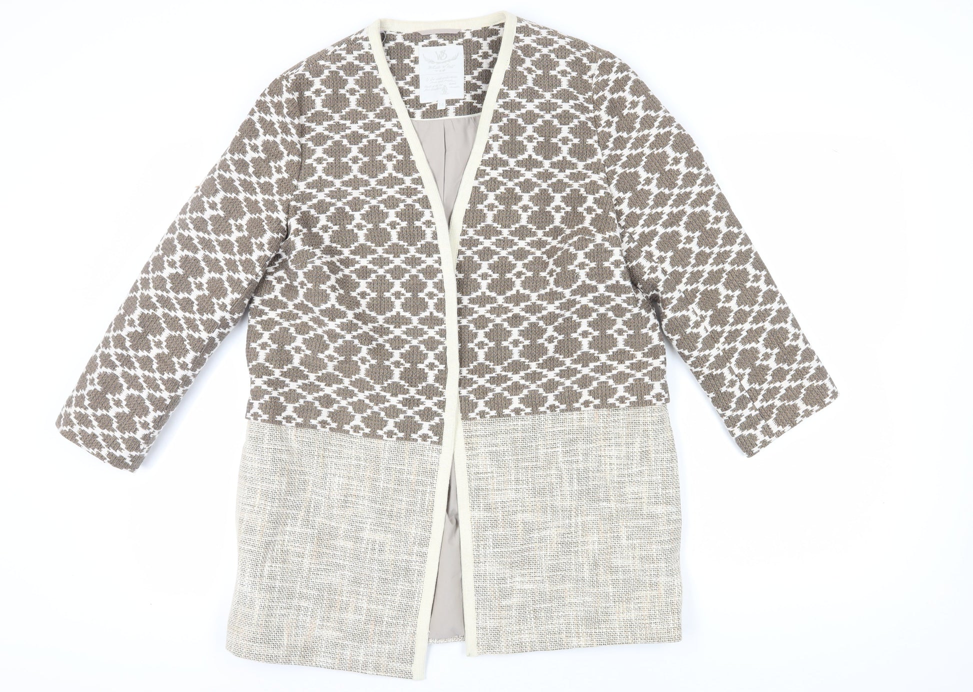White Stuff Women’s Brown Geometric Mid-Length Coatigan Size 14