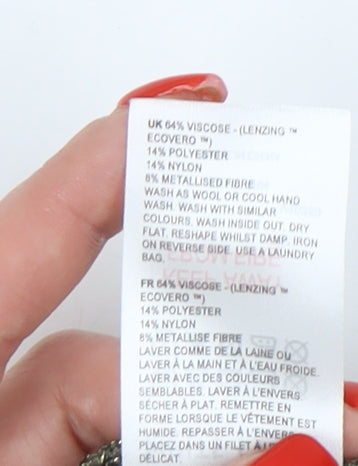 - Material Breakdown: 64% Viscose 14% Polyester 14% Nylon 8% Metallised Fibre