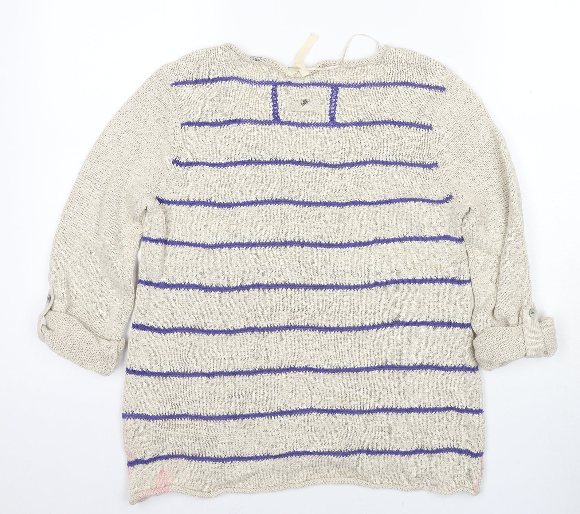 White Stuff Women's Beige Striped Pullover Jumper Size 12