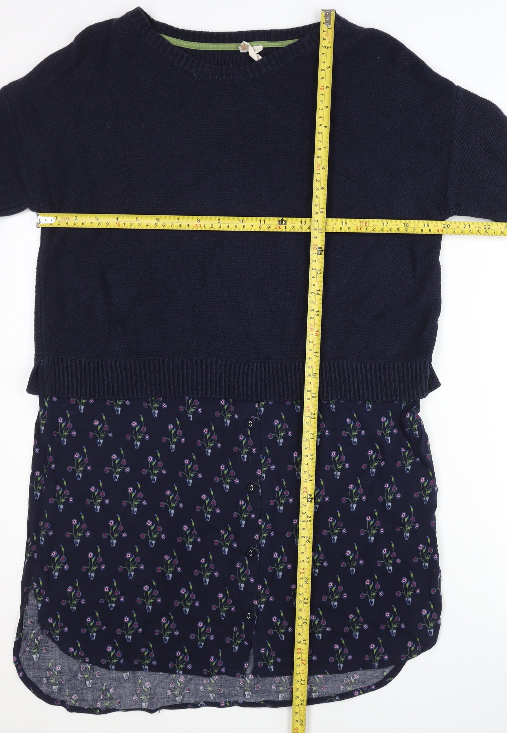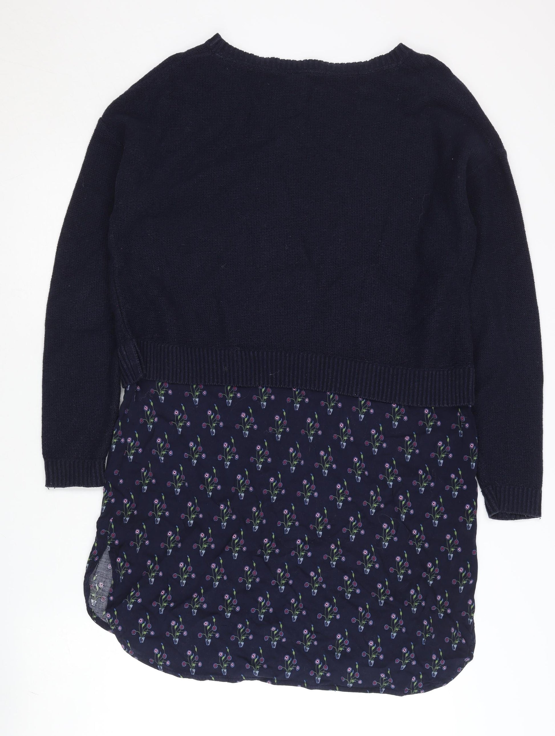 White Stuff Women's Blue Floral Layered Hem Long Sleeve Jumper Size 12