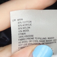 - Material Breakdown: 30% Cotton 30% Acrylic 30% Nylon 10% Wool