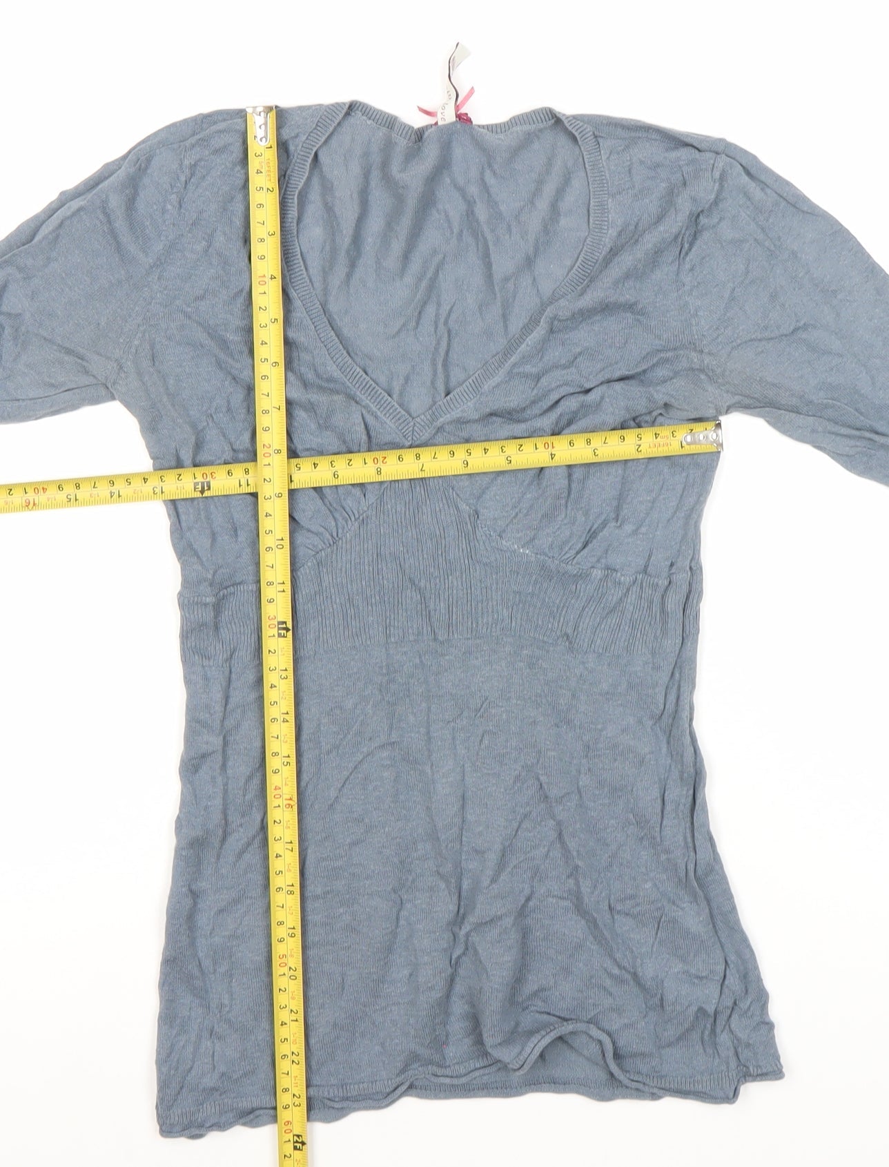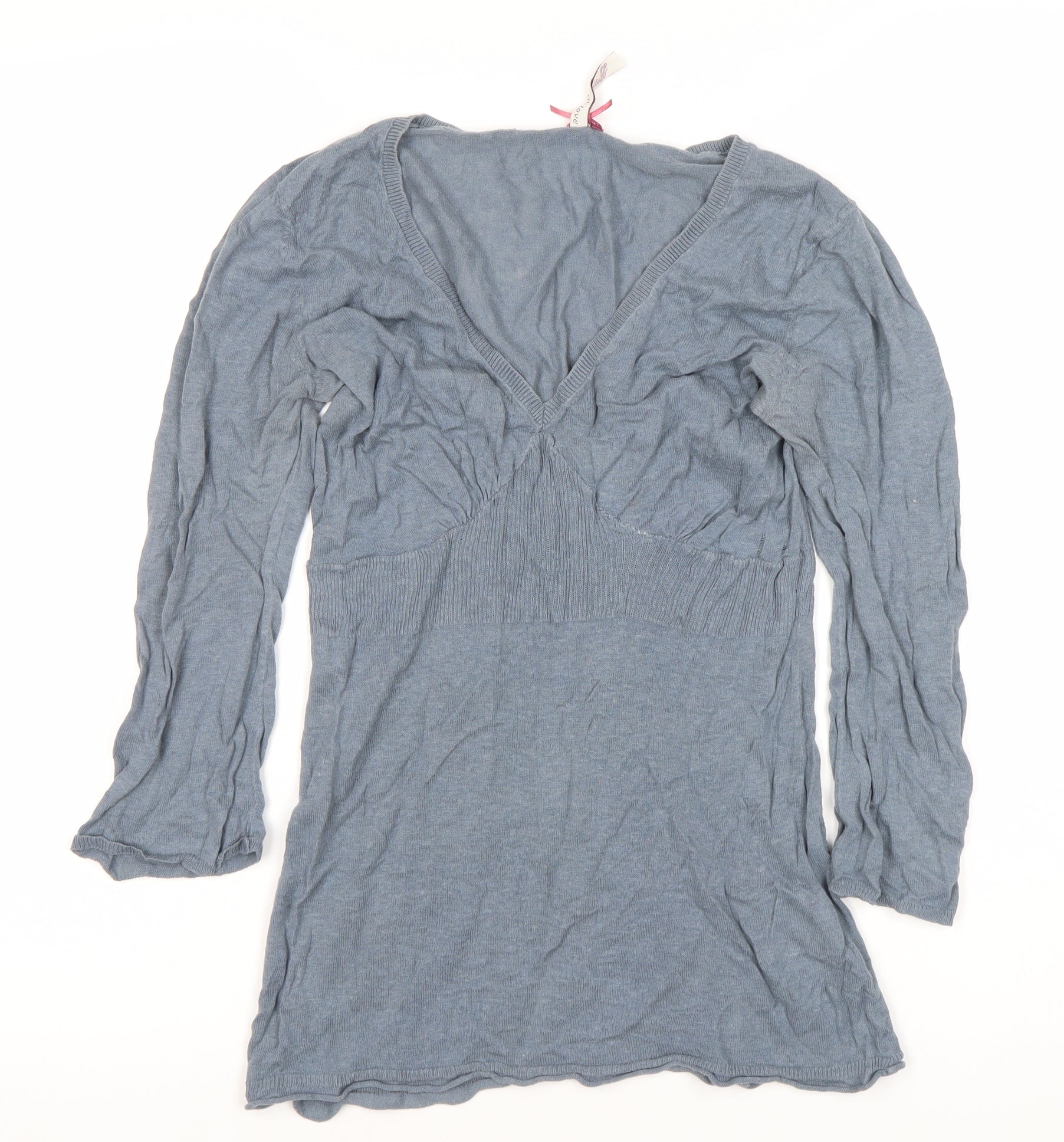 White Stuff Womens Blue Linen Cotton V-Neck Tunic Jumper Size 14