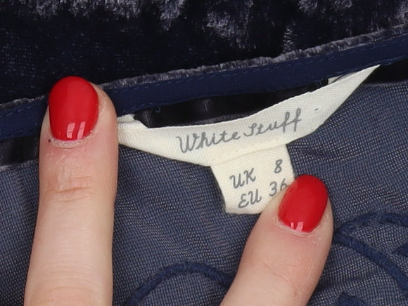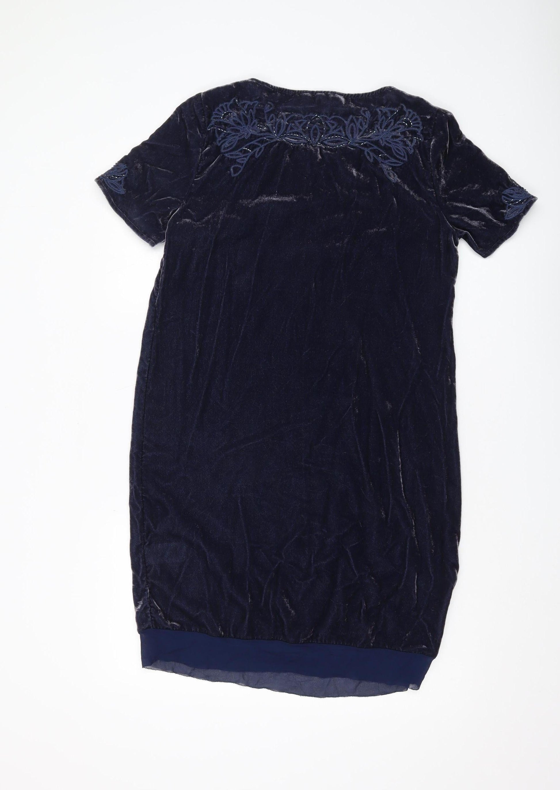 White Stuff Women's Blue Short Sleeve Velvet Dress
