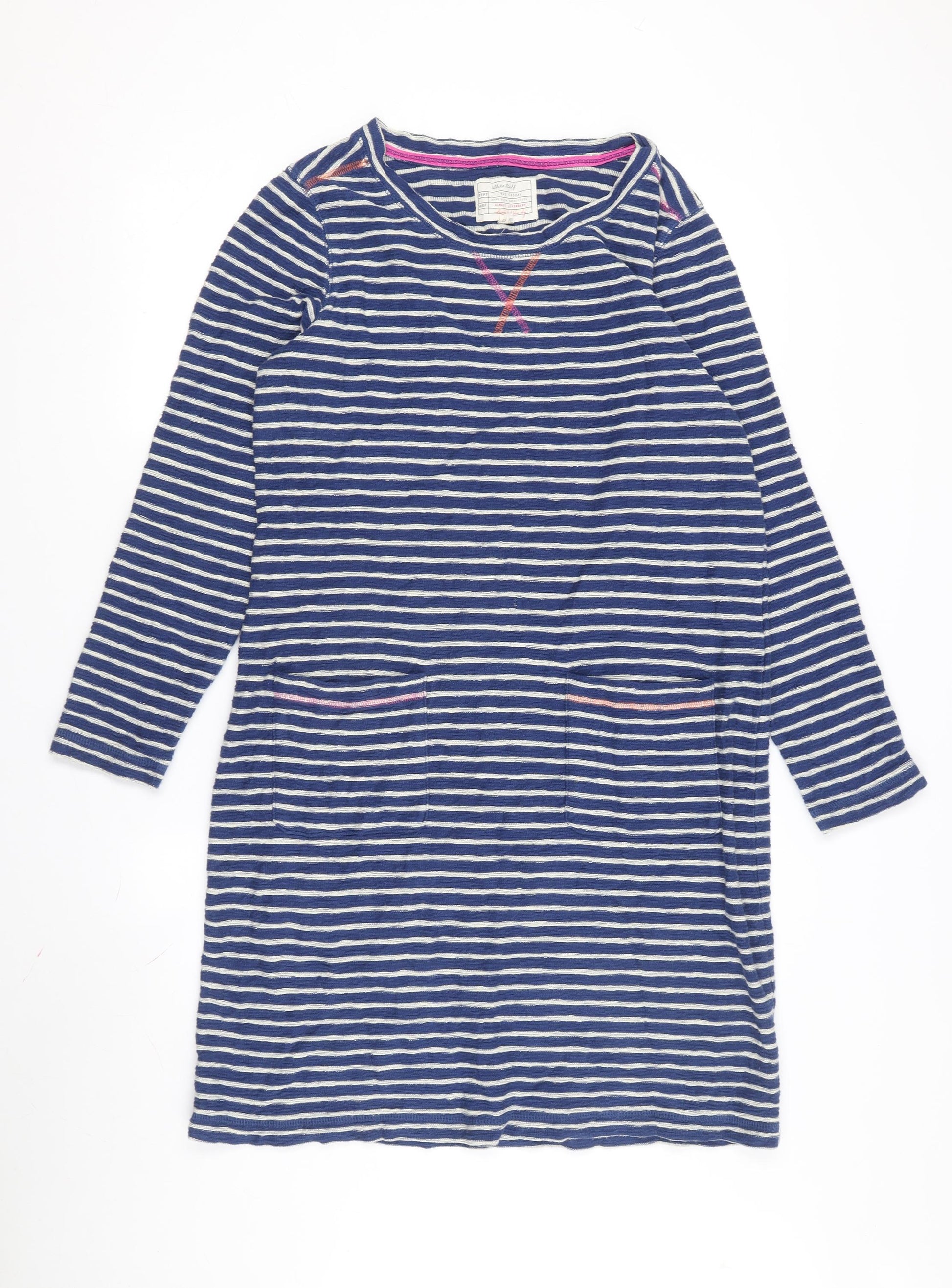 White Stuff Women's Blue Striped Shift Dress Size 14
