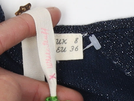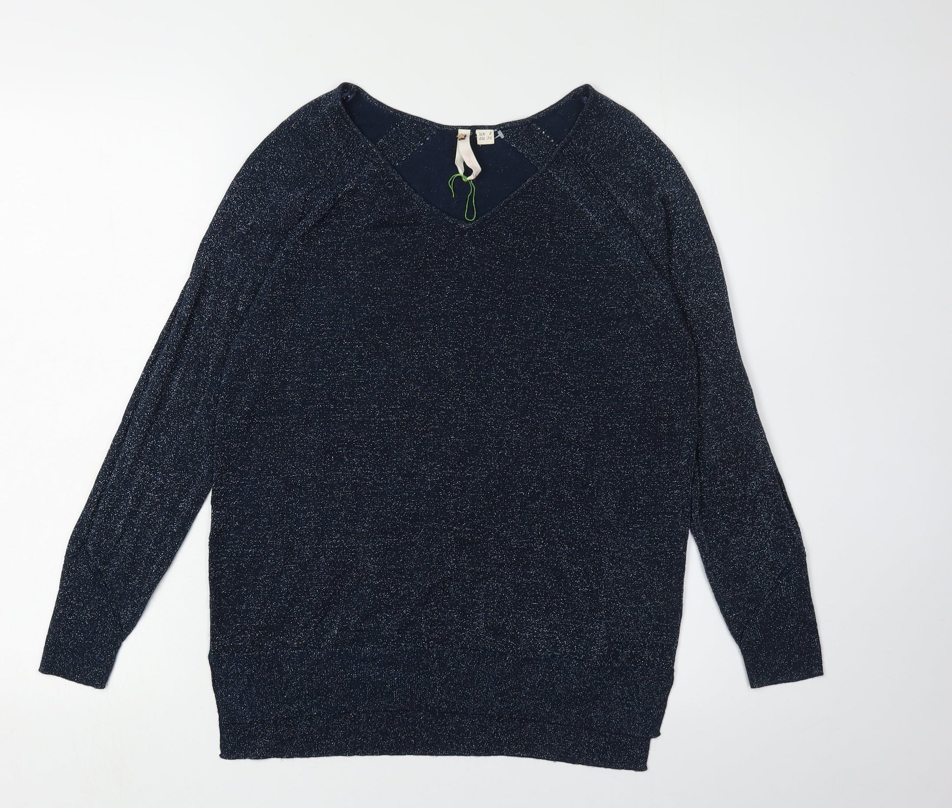 White Stuff Women's Blue V-Neck Jumper, Size 8, Raglan Sleeve