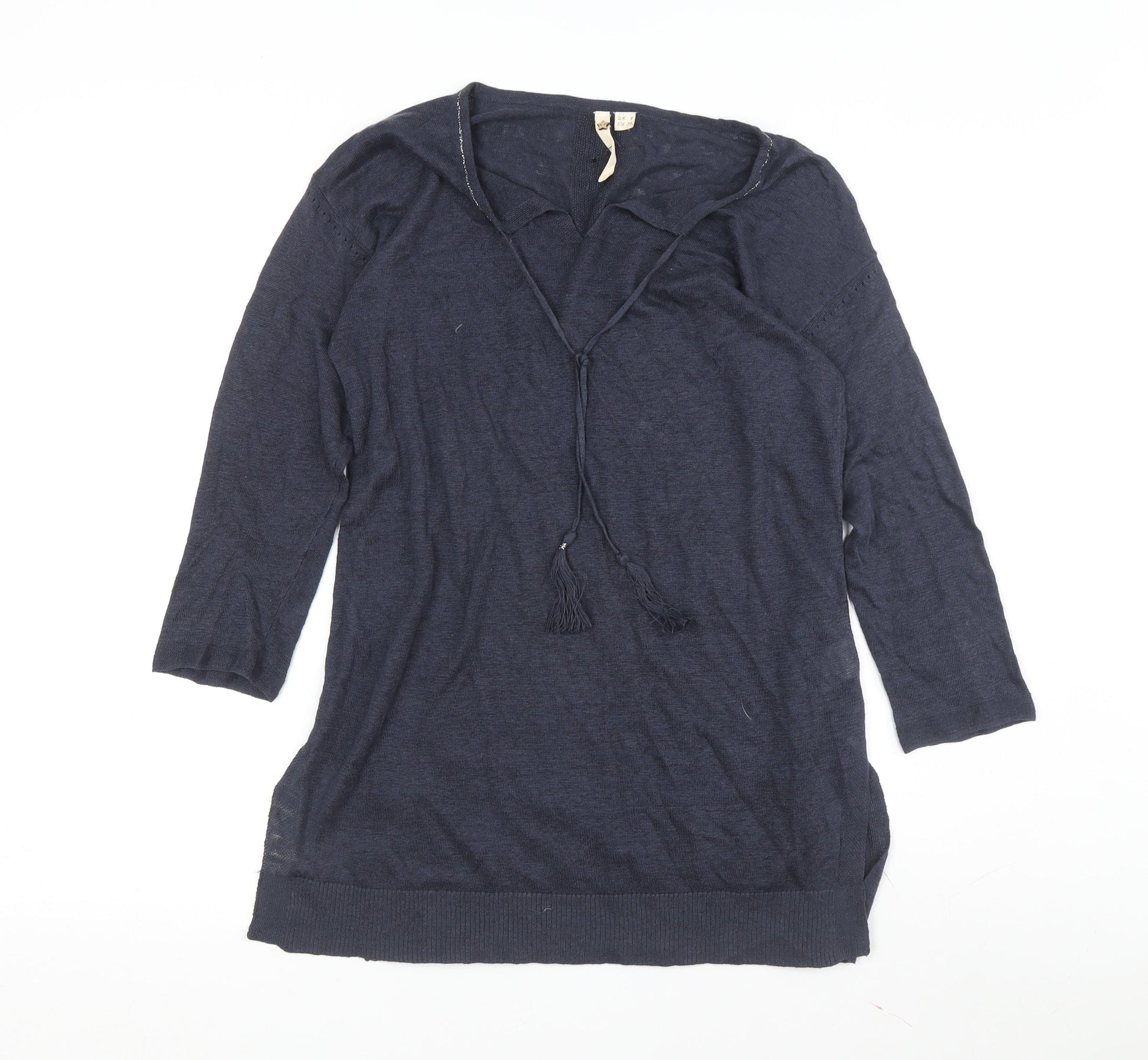 White Stuff Women's Blue Wool Tunic Jumper, Size 8, V-Neck