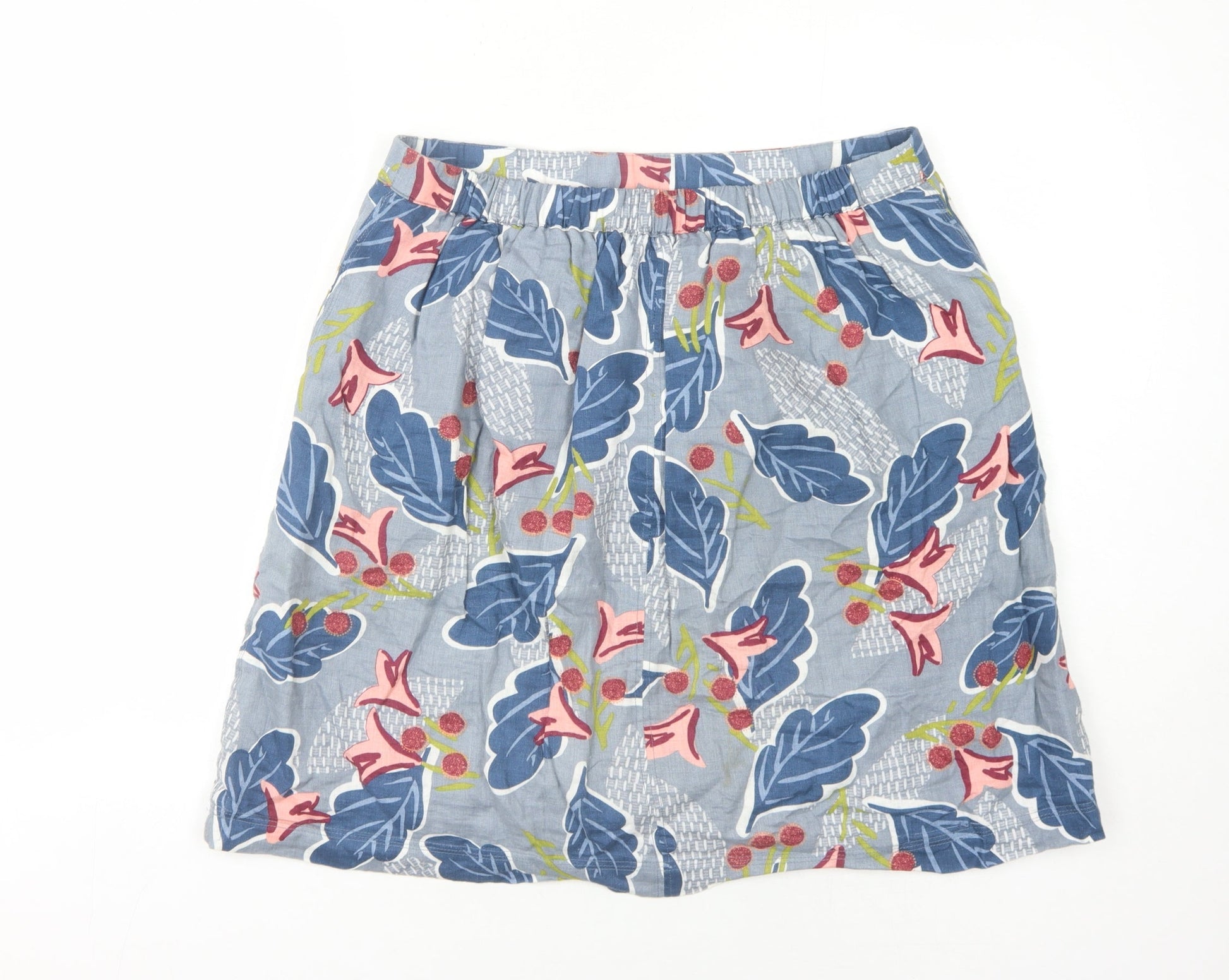 White Stuff Women's Floral Multicoloured Linen Skirt Size 14