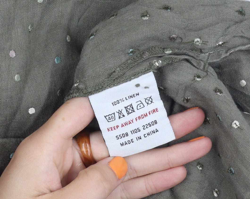 White Stuff Women's Green Polka Dot Linen Dress Size 8