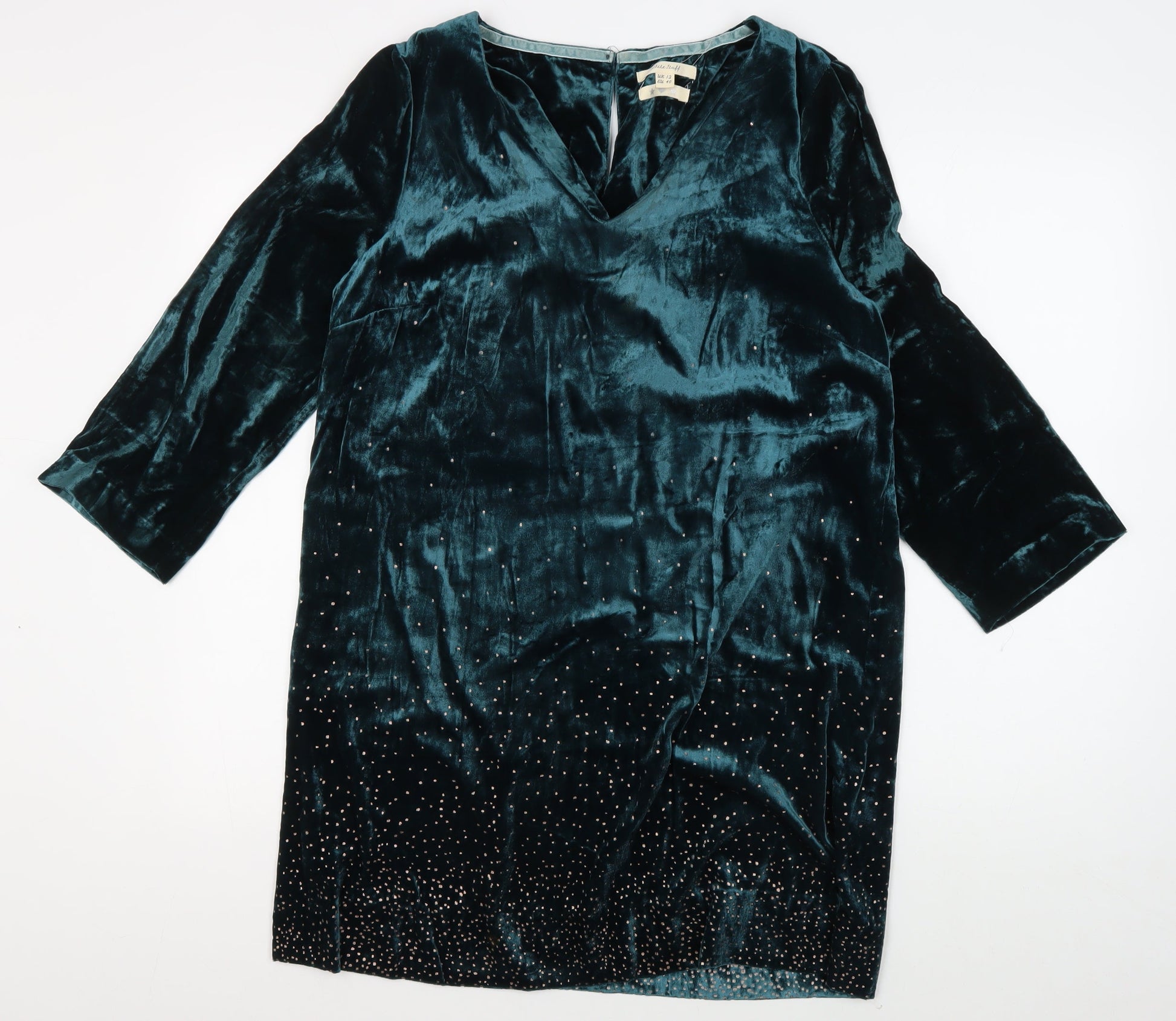 White Stuff Women's Green Velvet Shift Dress Size 12