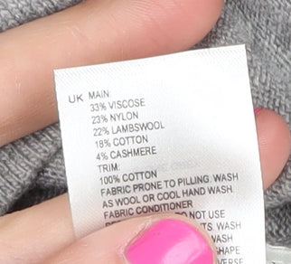 - Material Breakdown: 33% Viscose 23% Nylon 22% Wool 18% Cotton 4% Cashmere