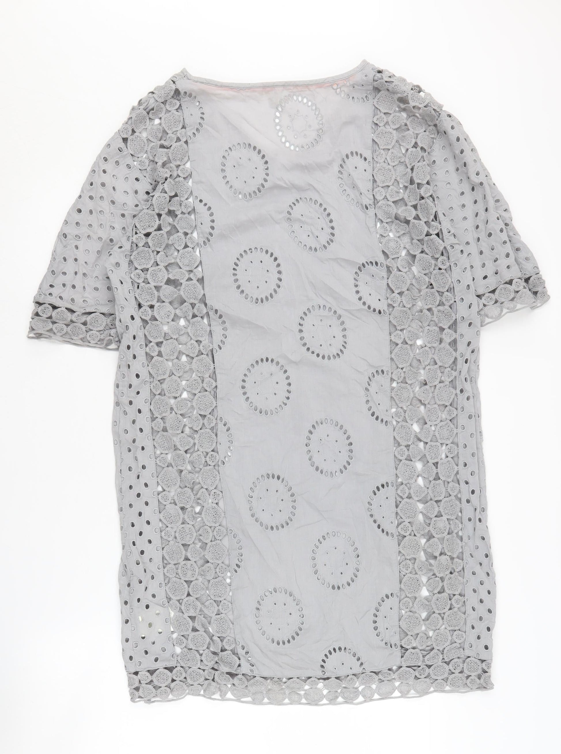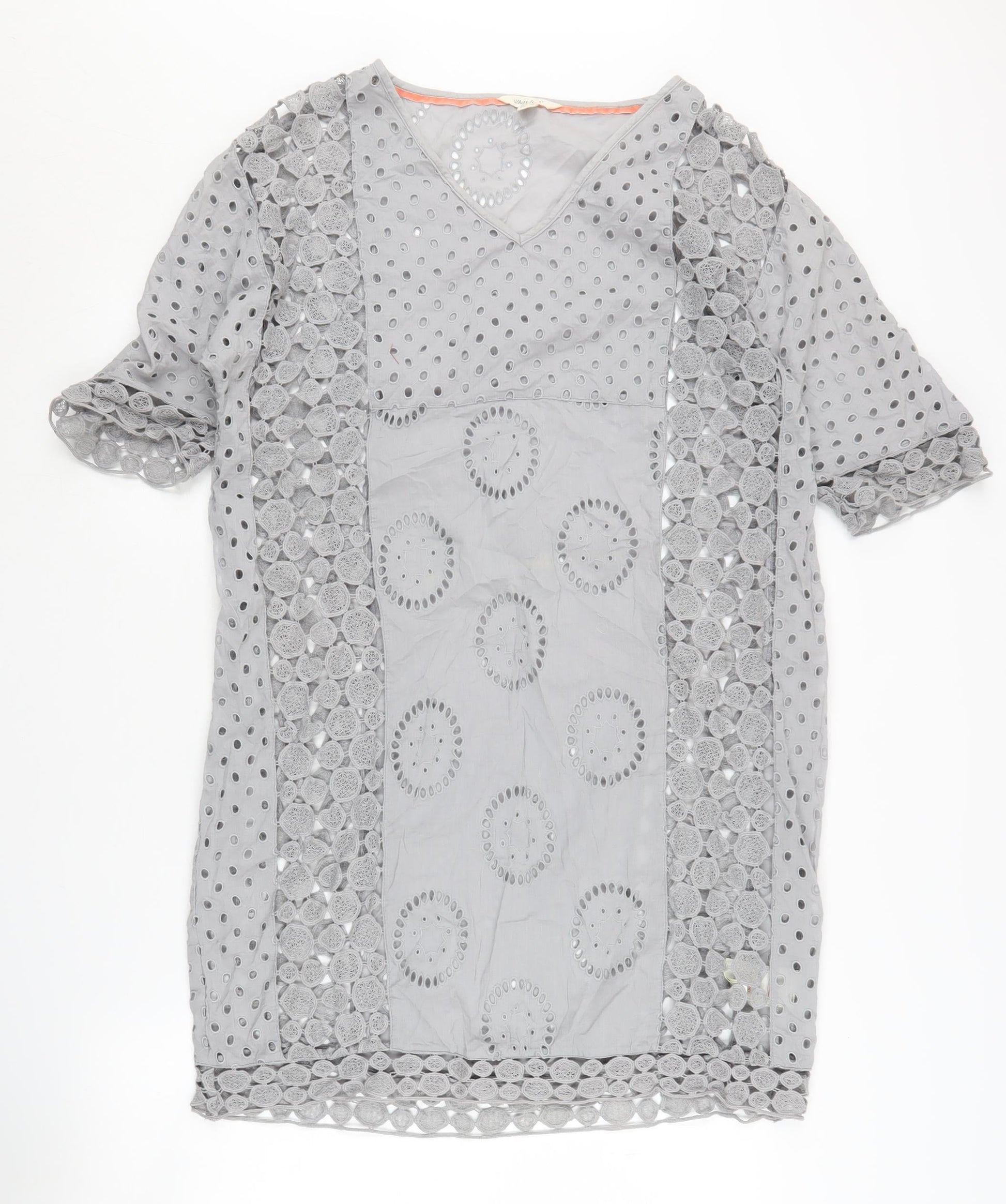 White Stuff Women's Grey Dress Size 10 - Embroidered Cotton