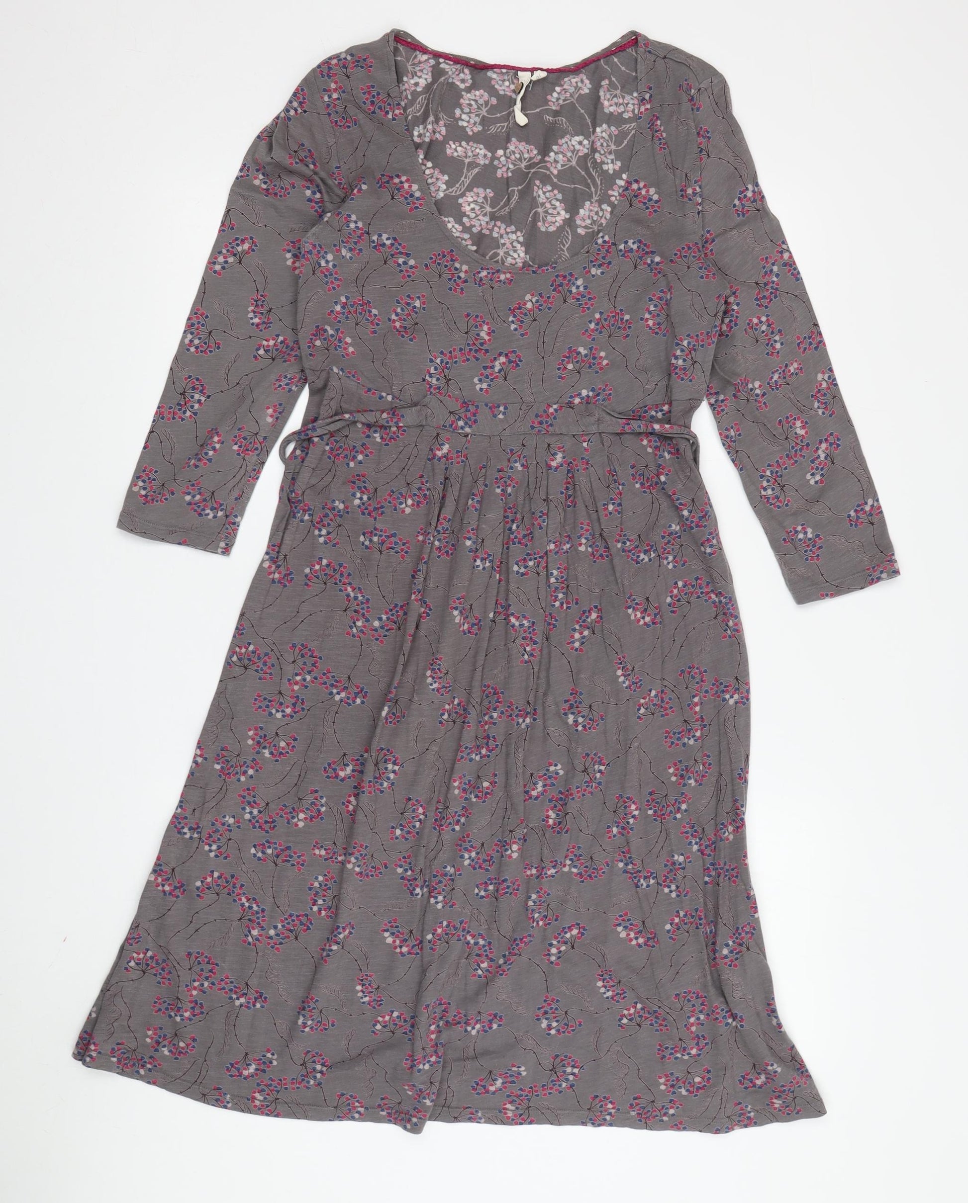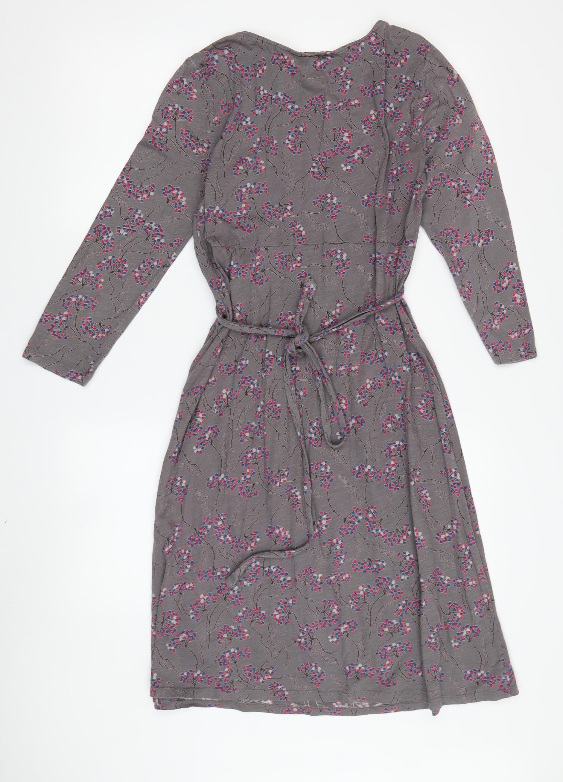 White Stuff Women's Grey Floral Fit & Flare Dress - Size 10