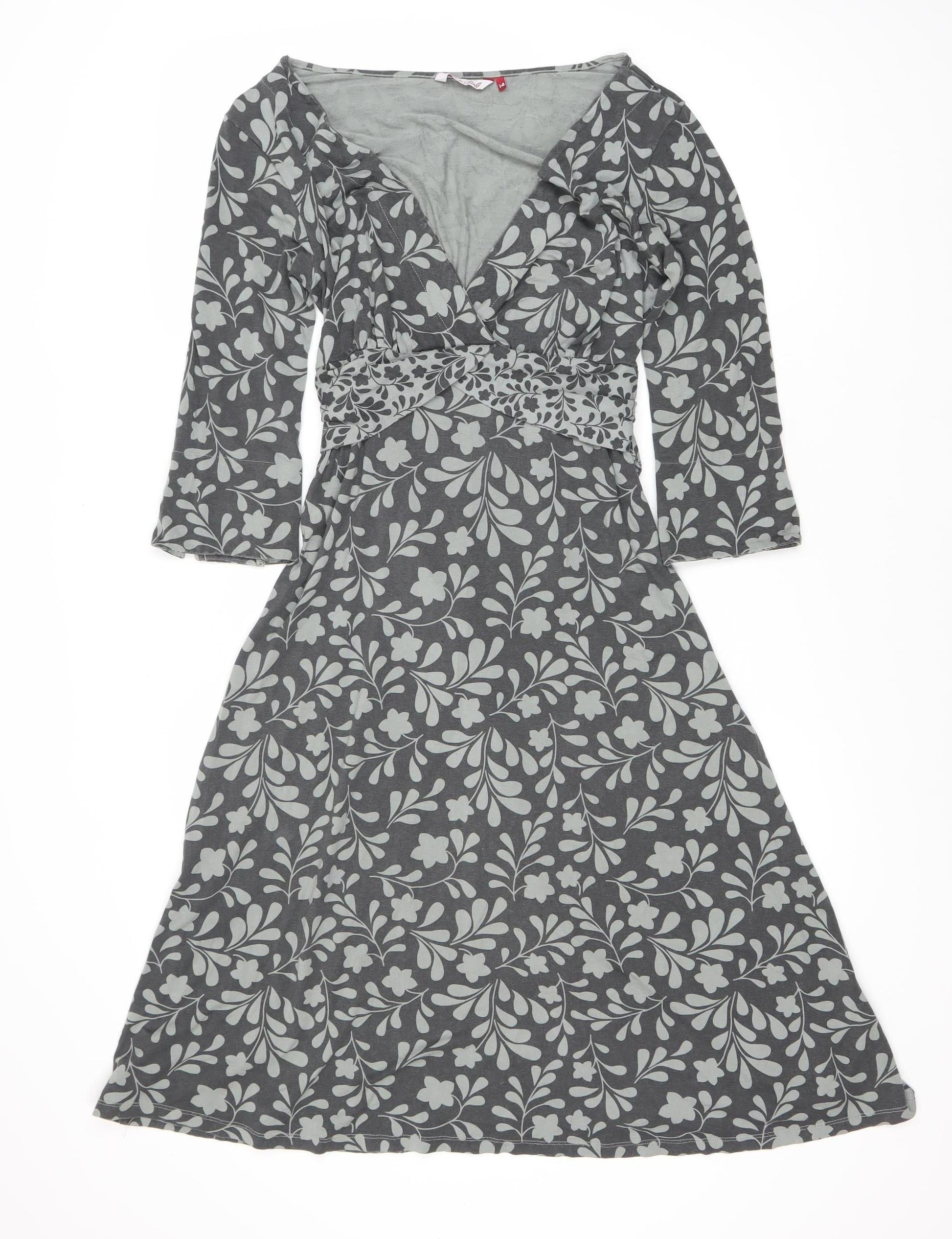 White Stuff Women's Grey Floral Midi Dress Size 14