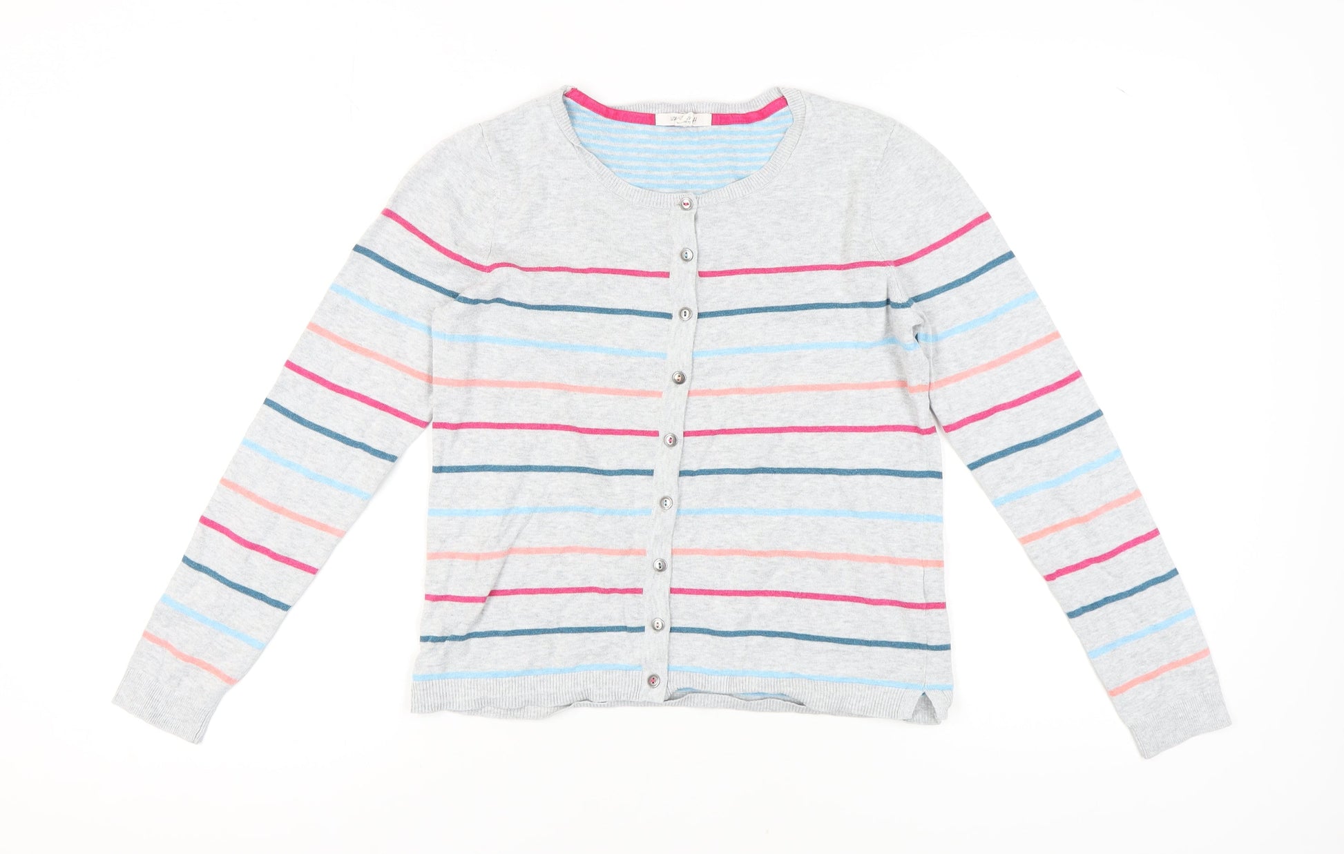 White Stuff Women's Grey Striped Cardigan Size 12