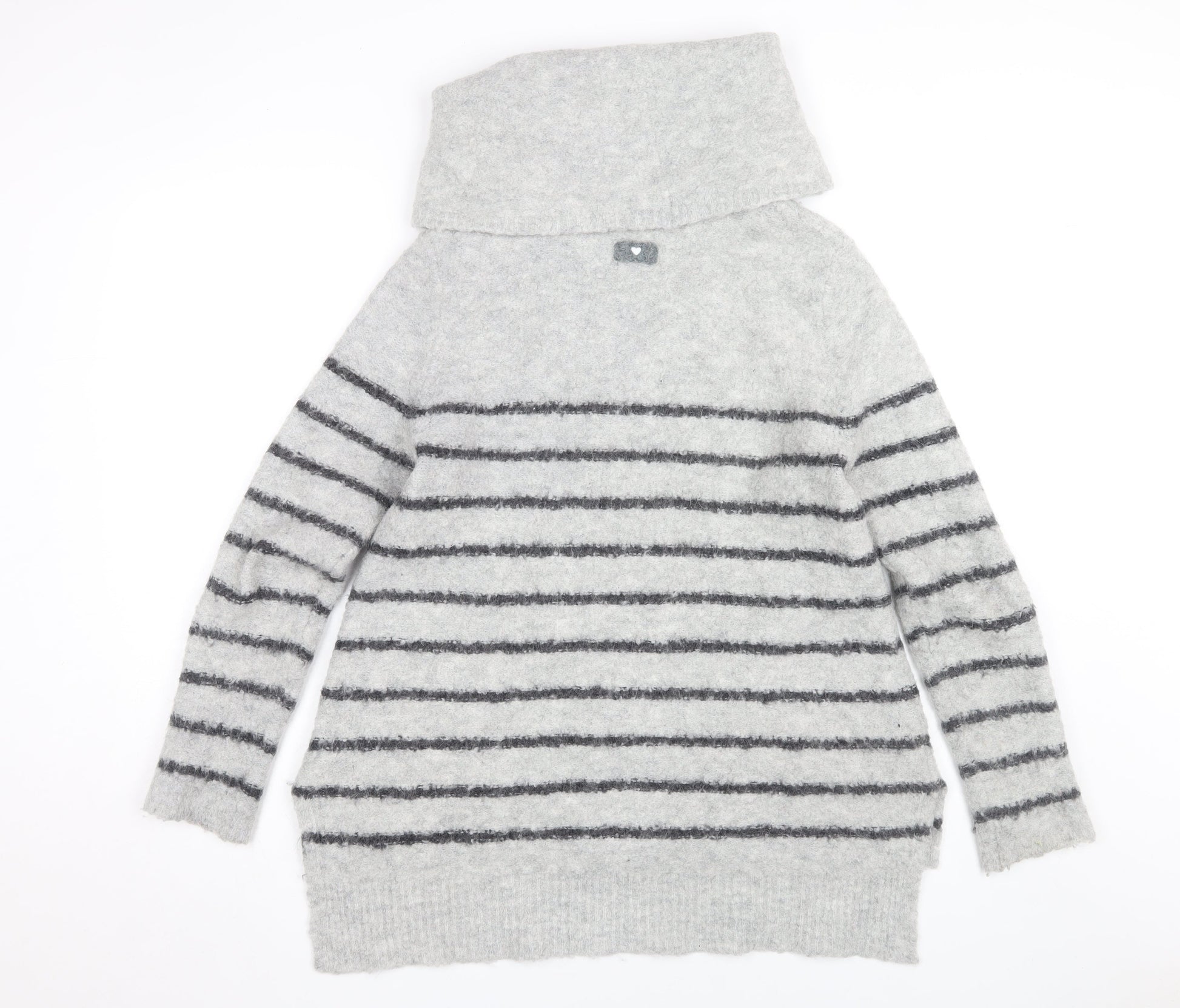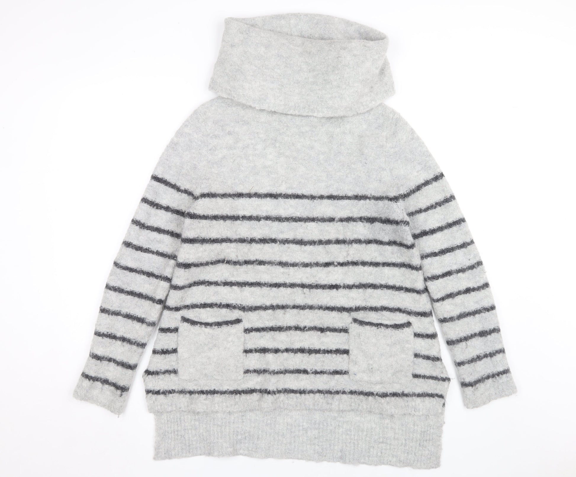 White Stuff Women's Grey Striped Cowl Neck Jumper Size 12