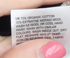- Material Breakdown: 70% Cotton 30% Merino Wool