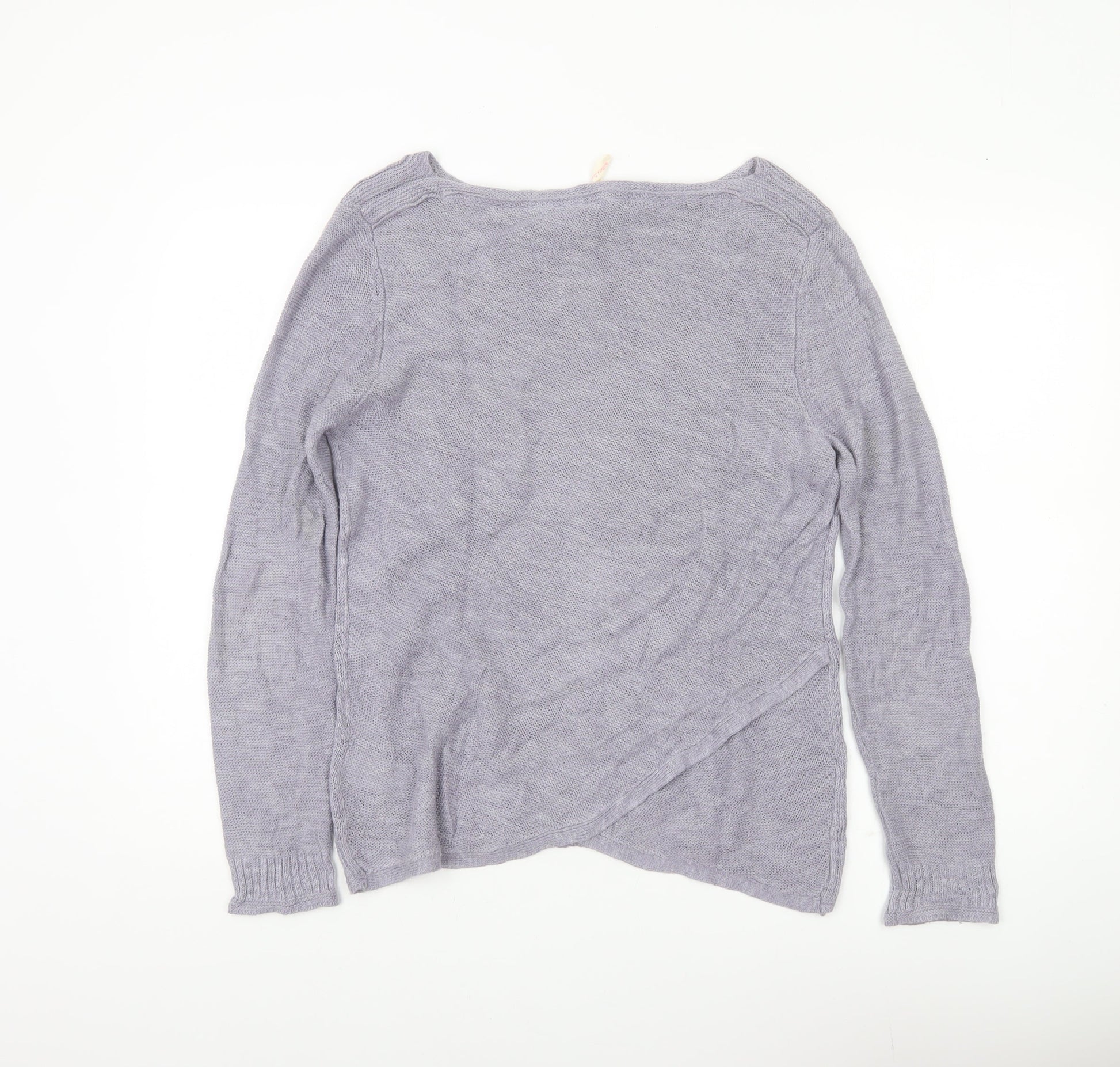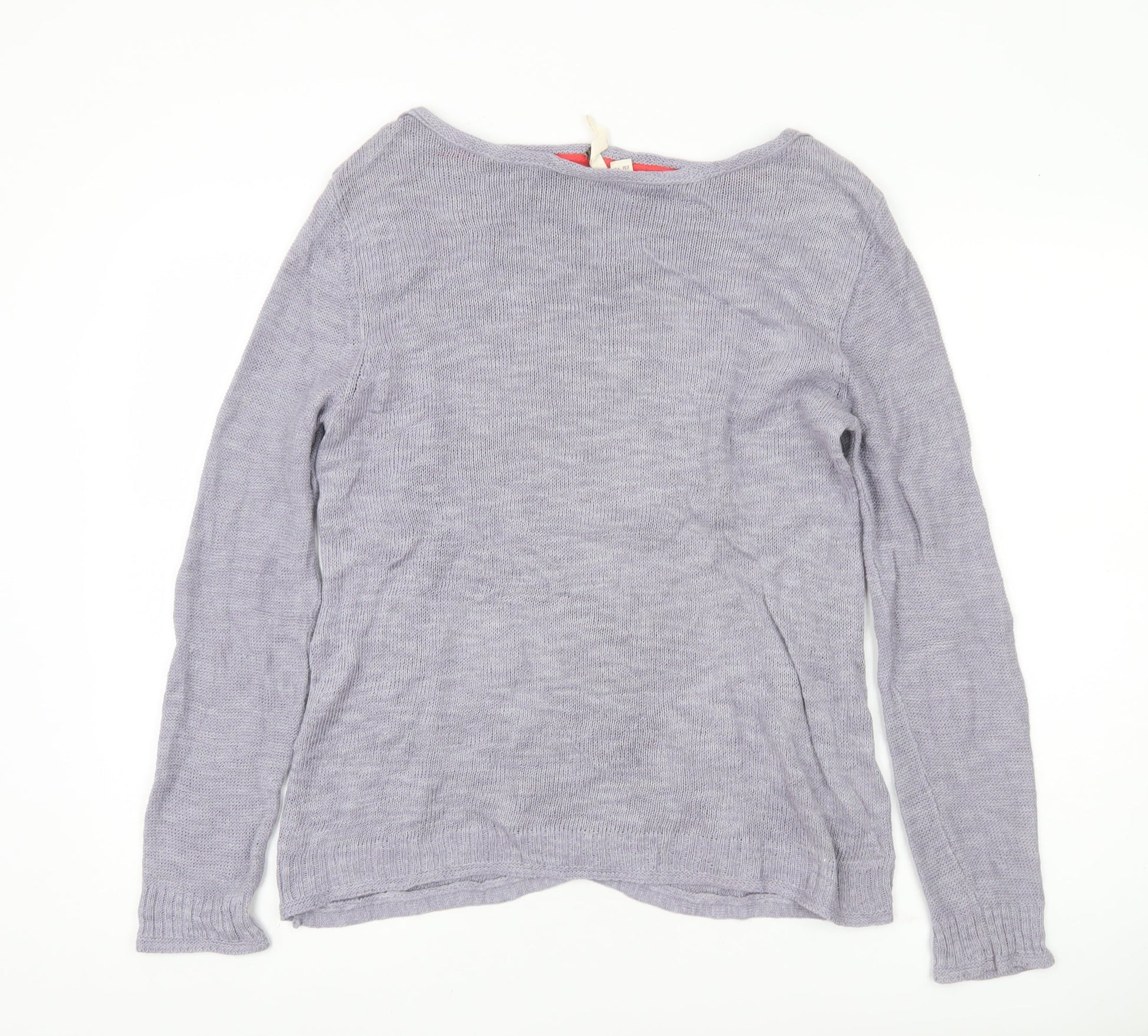 White Stuff Womens Purple Linen Cotton Jumper UK 12 Boat Neck