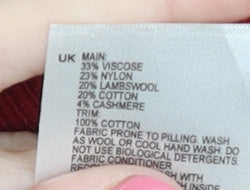 - Material Breakdown: 33% Viscose 23% Nylon 20% Lambswool 20% Cotton 4% Cashmere