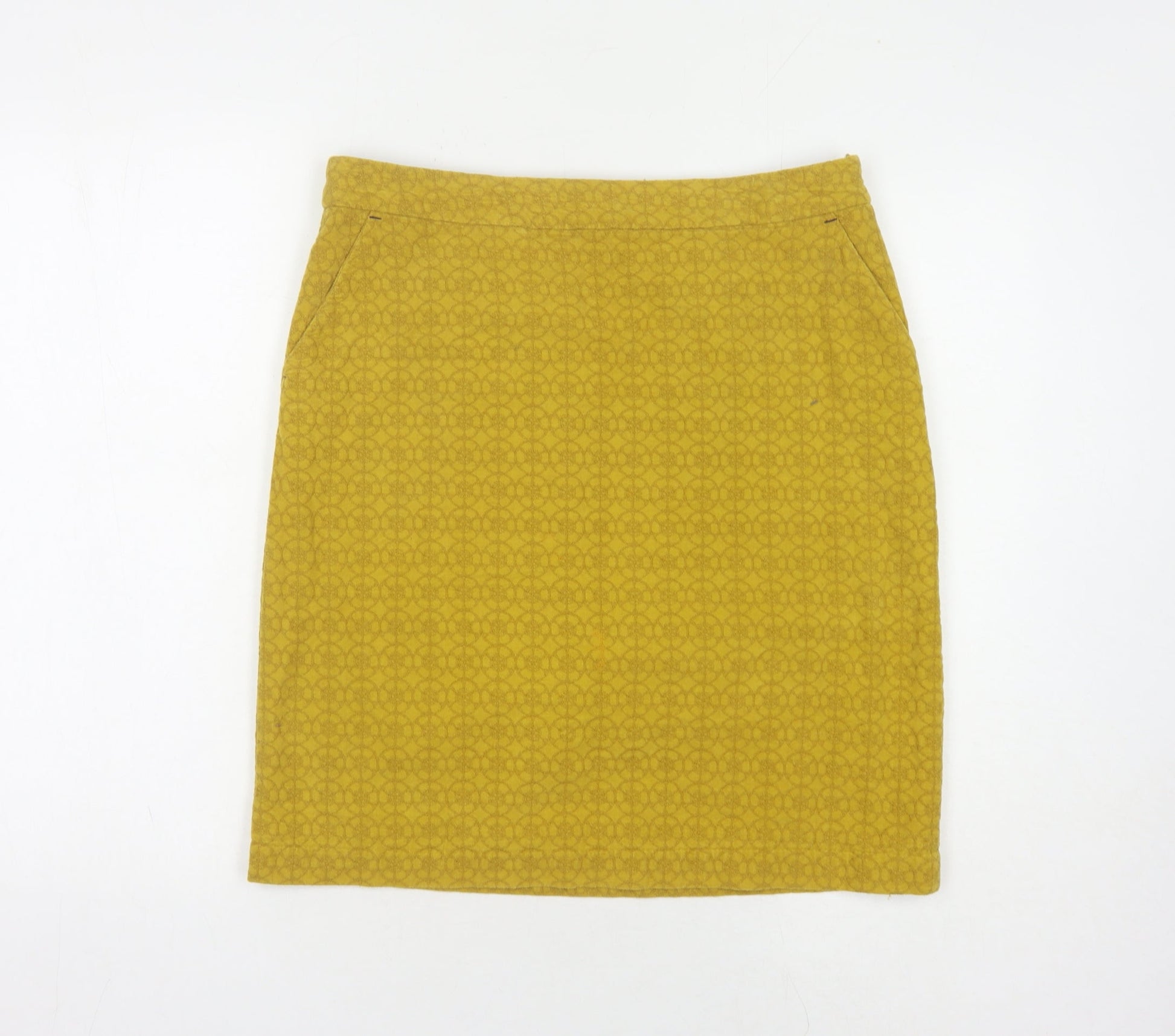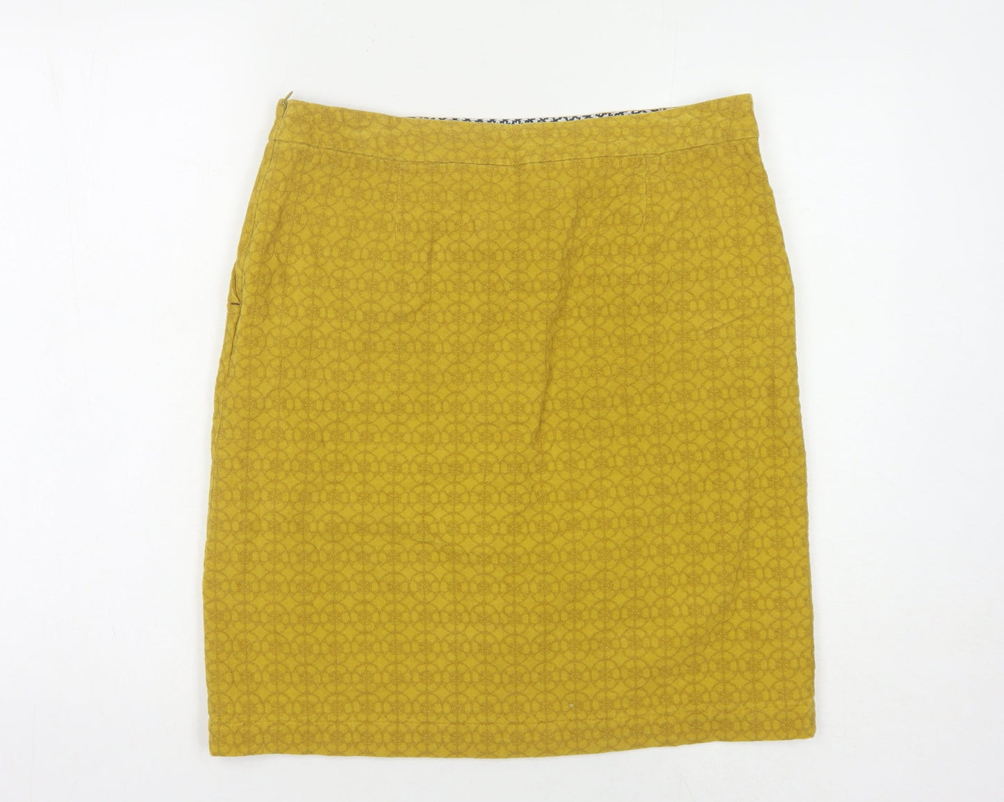 White Stuff Women's Yellow Cotton Pencil Skirt Size 12