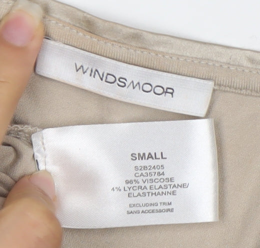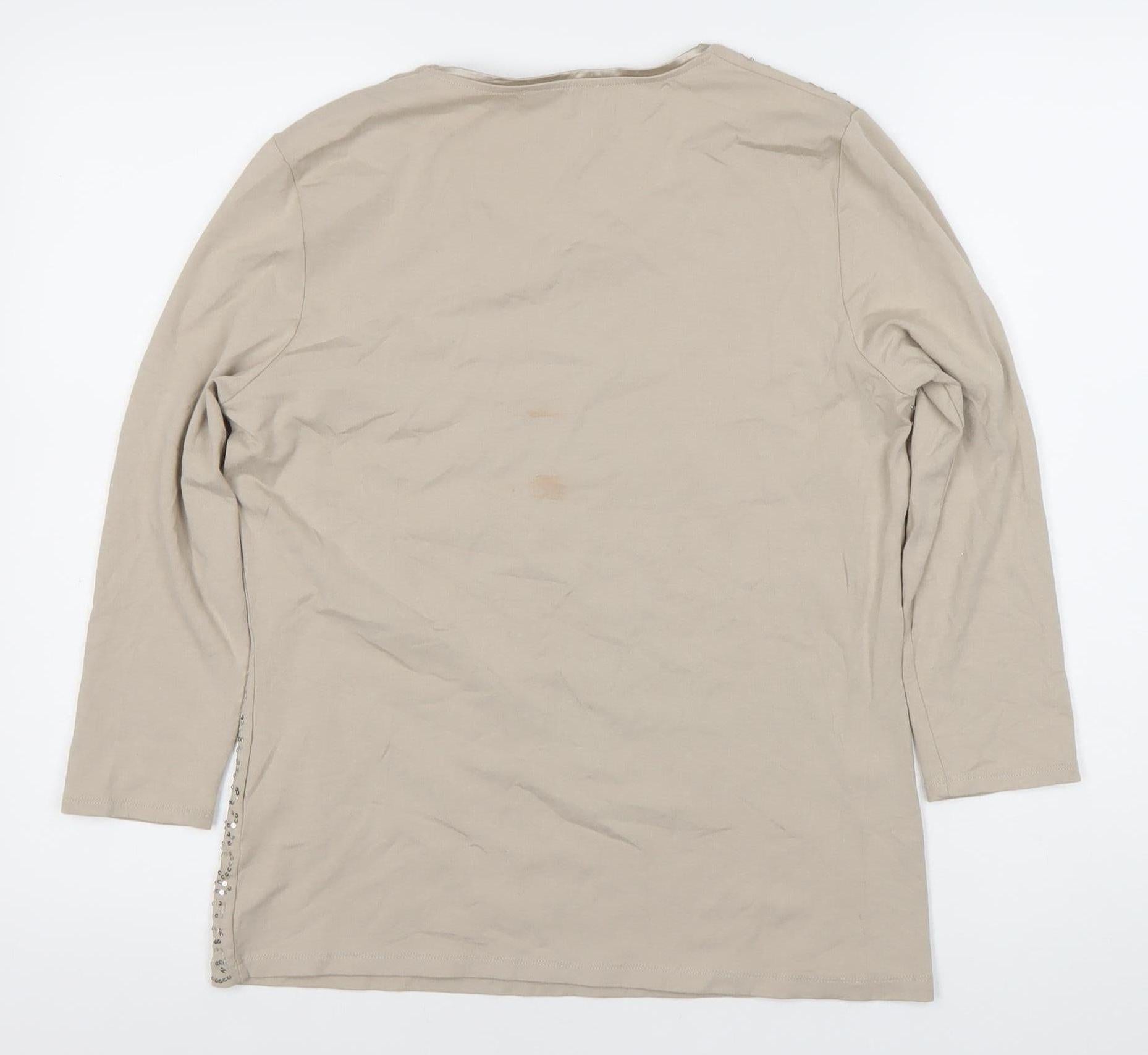 Windsmoor Women’s Beige Sequin Long Sleeve Scoop Neck Top Size S