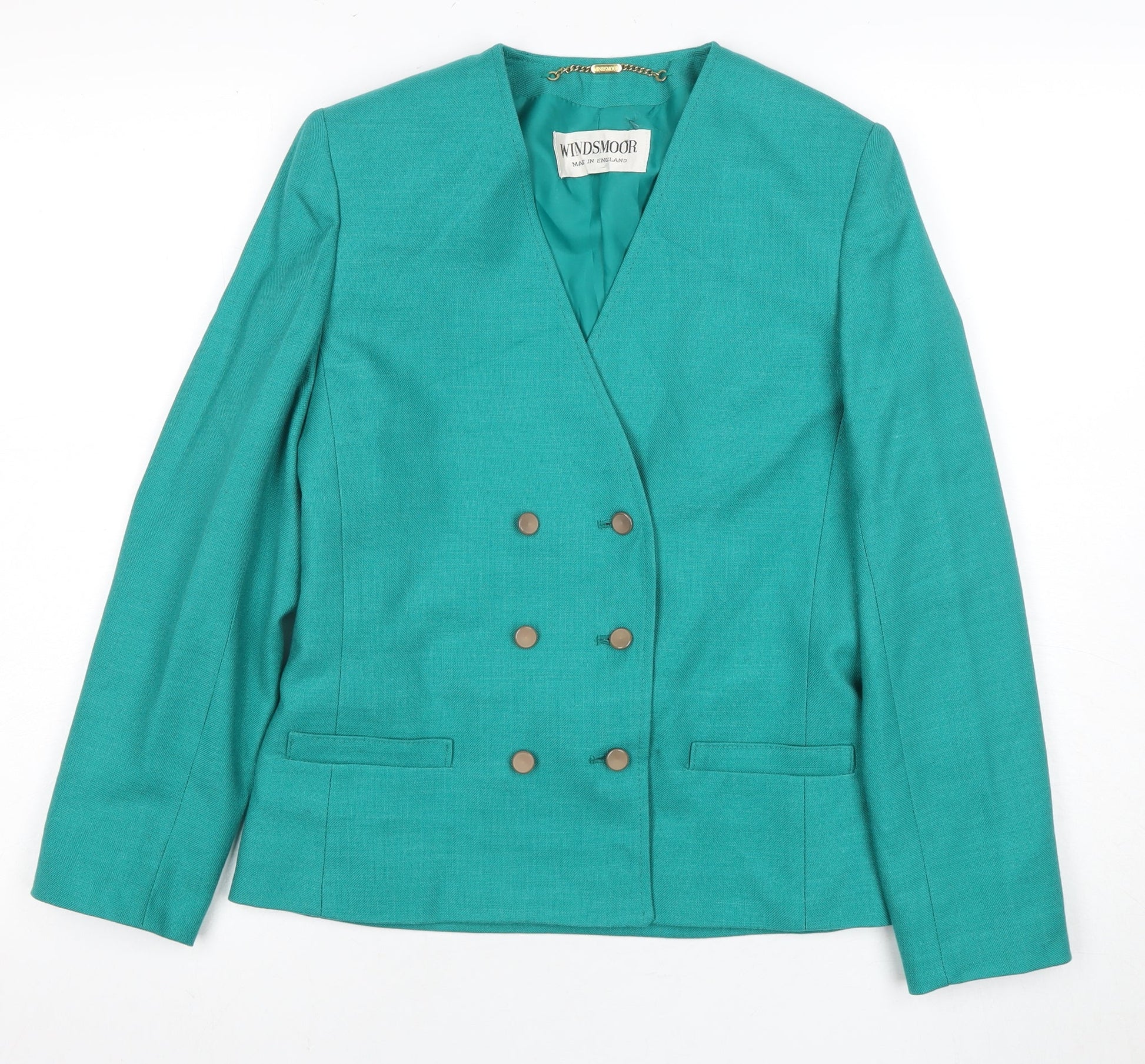 Windsmoor Women's Green Double-Breasted Blazer Size 8