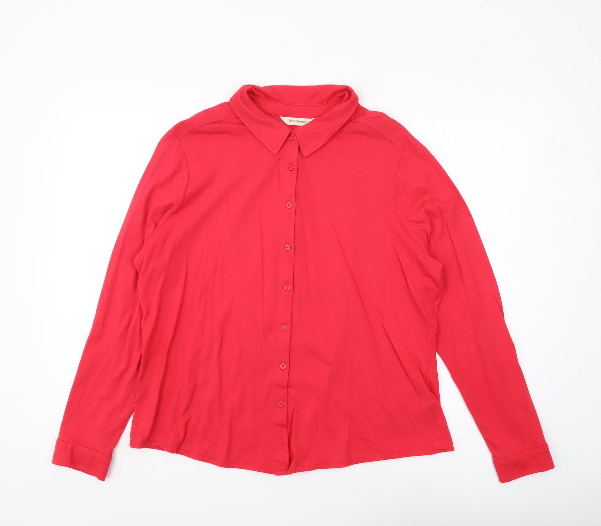 Woolovers Women's Red Collared Long Sleeve Blouse