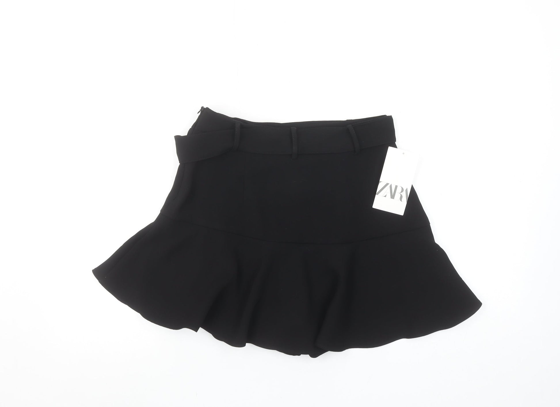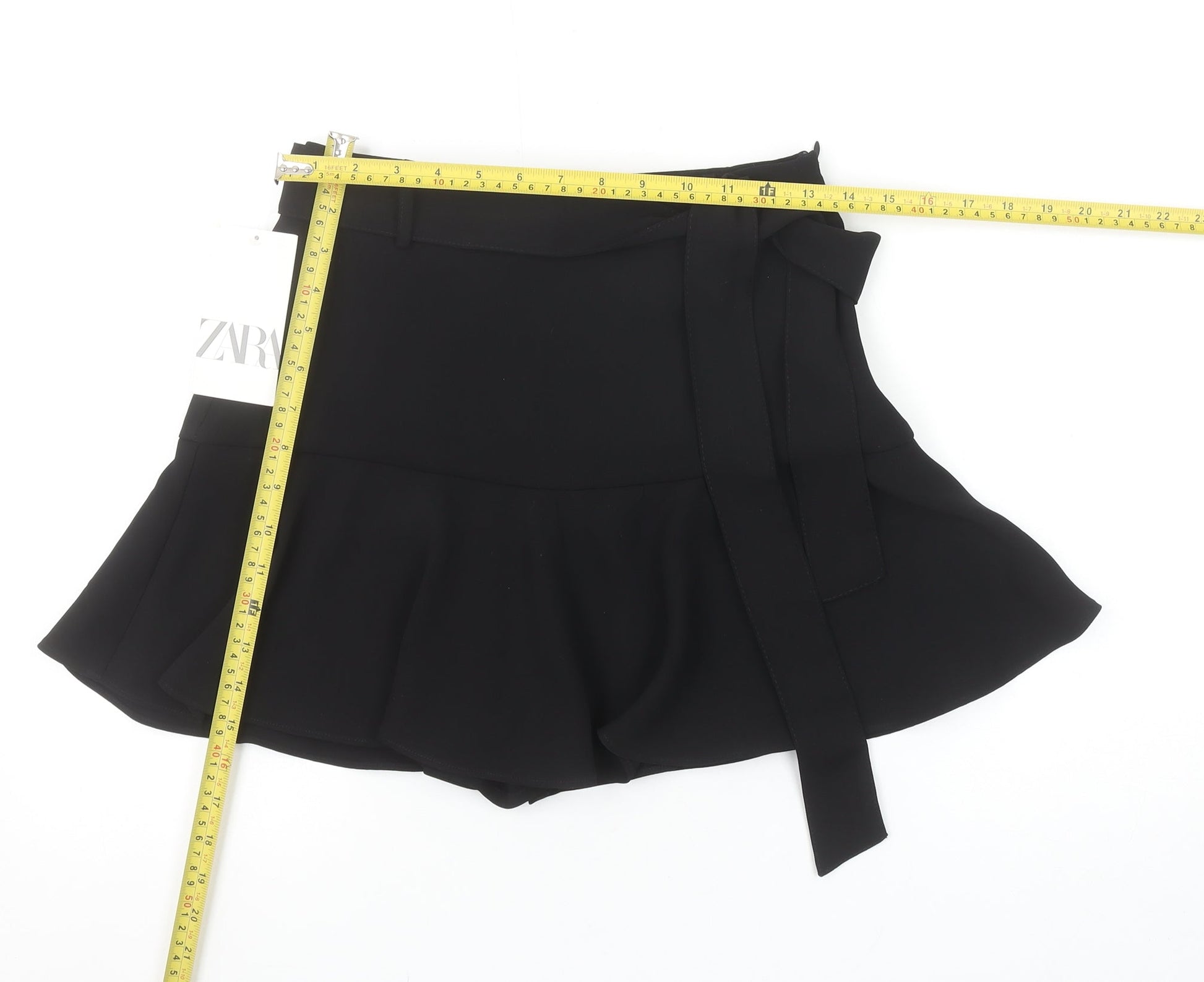 ZARA Women Black High Rise Short Skort with Bow Detail Size S 8