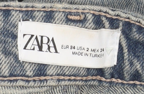 Zara Women Blue Size 6 Wide-Leg High Rise Cotton Jeans