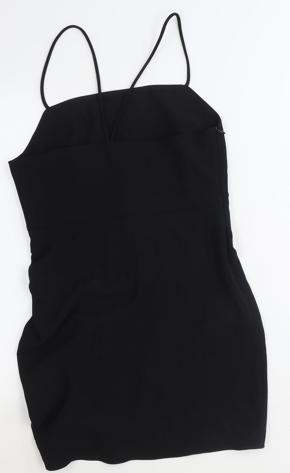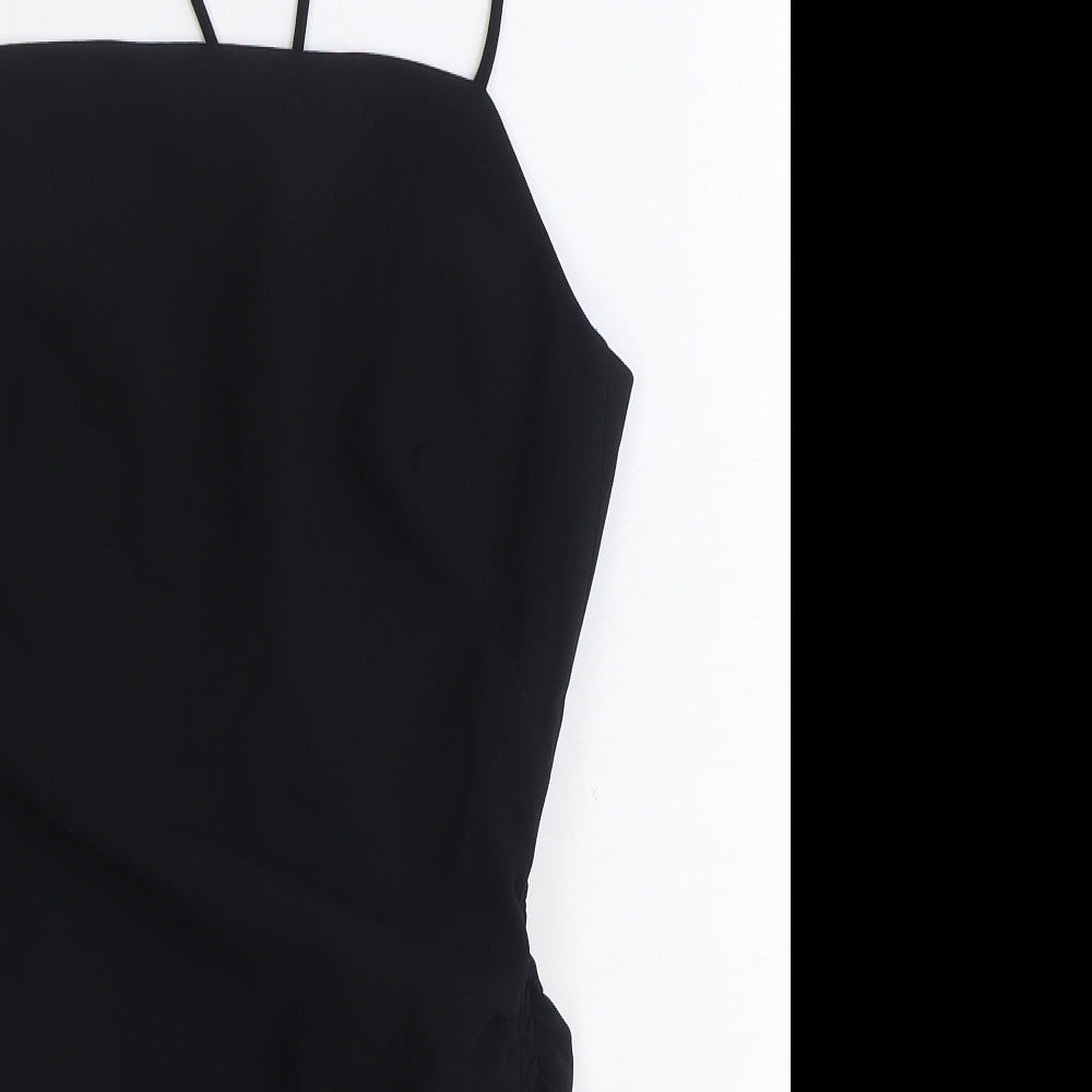 Zara Womens Black Polyester Bodycon Size S Square Neck Zip