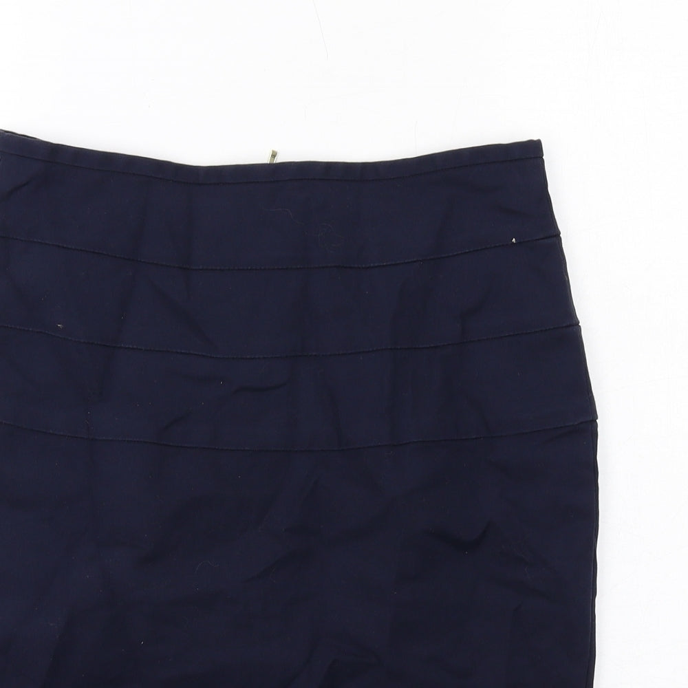 Zara Womens Blue Cotton Straight & Pencil Skirt Size M Zip