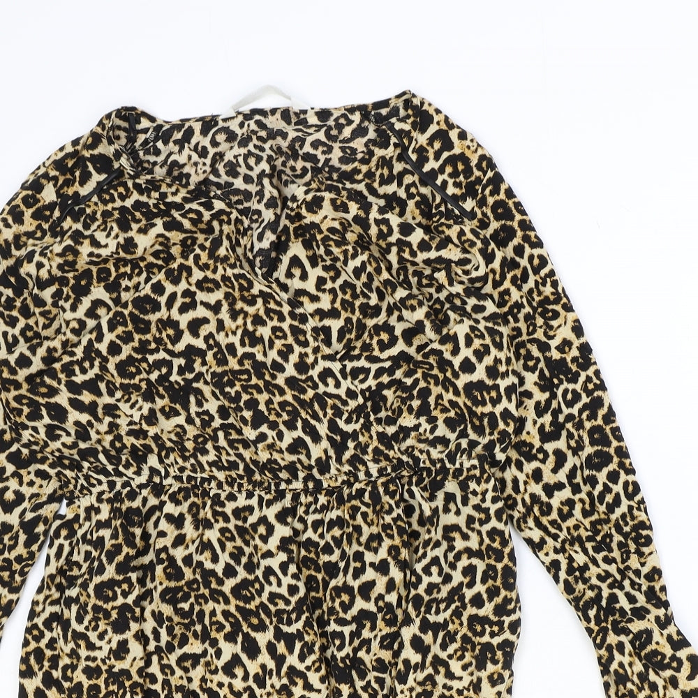 Zara Womens Brown Animal Print Viscose A-Line Size M V-Neck Pullover - Leopard print