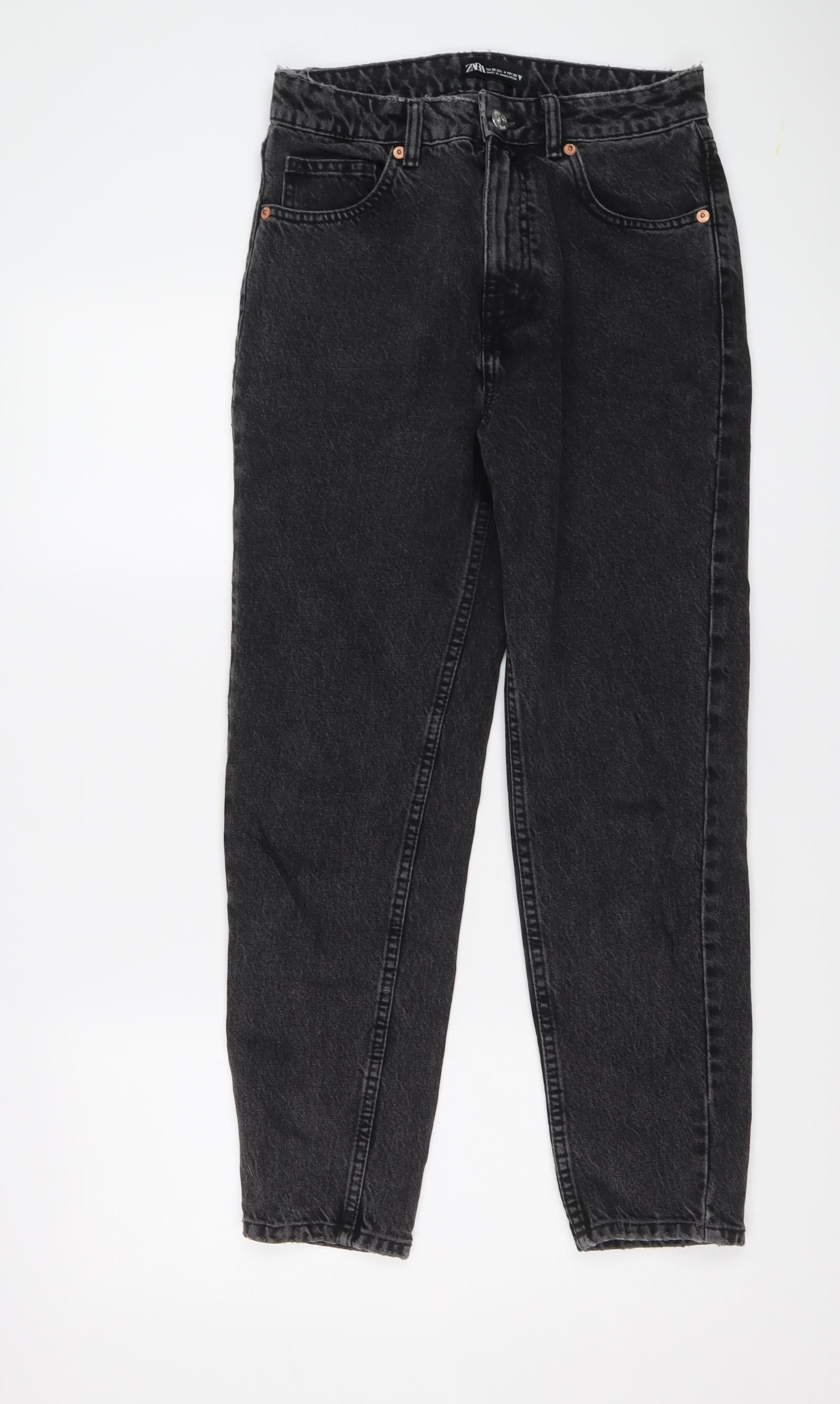 Zara Womens Grey Cotton Boyfriend Jeans Size 8 L26 in Regular Button