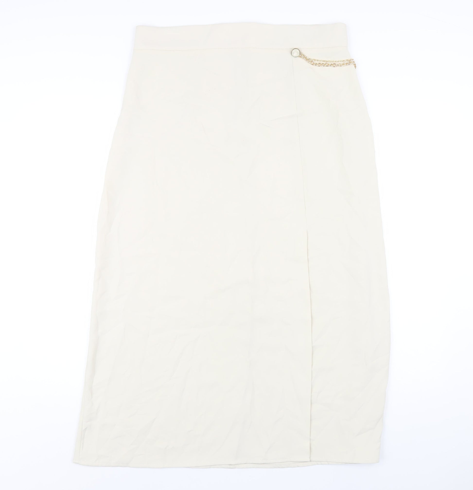 Zara Womens Ivory Polyester A-Line Skirt Size XL Zip
