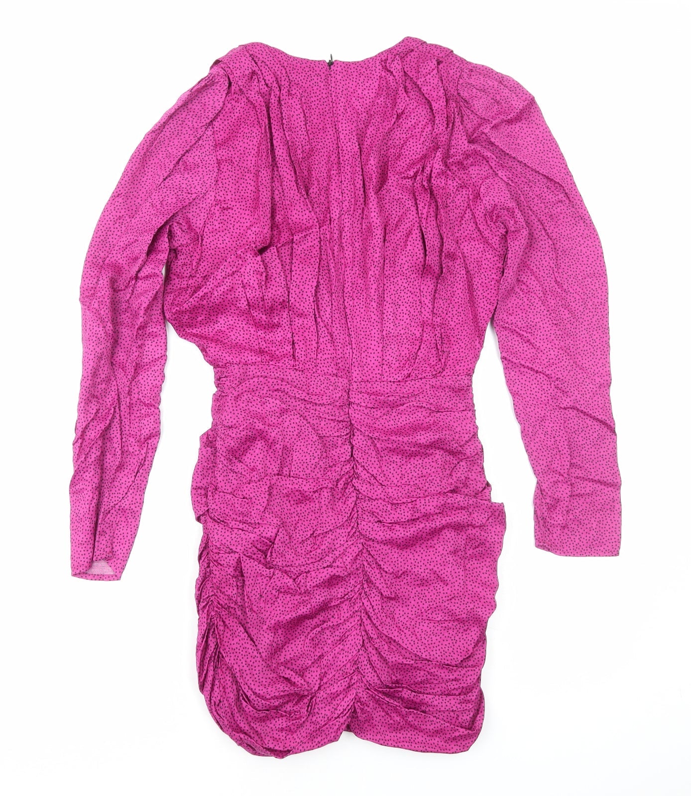 Zara Womens Pink Animal Print Polyester Bodycon Size XS V-Neck Zip - Pleat Detail