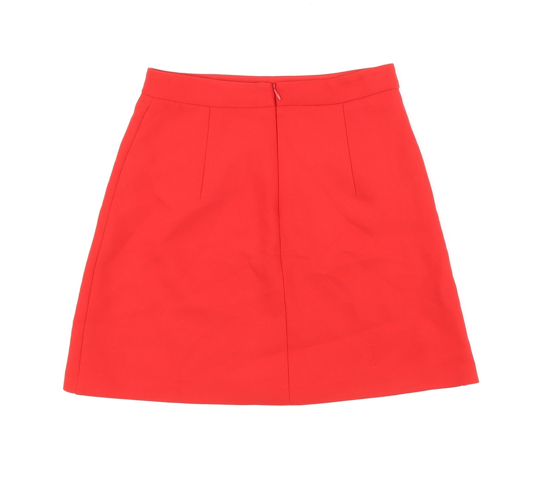 Zara Womens Red Polyester A-Line Skirt Size 6 Zip - Zips on front